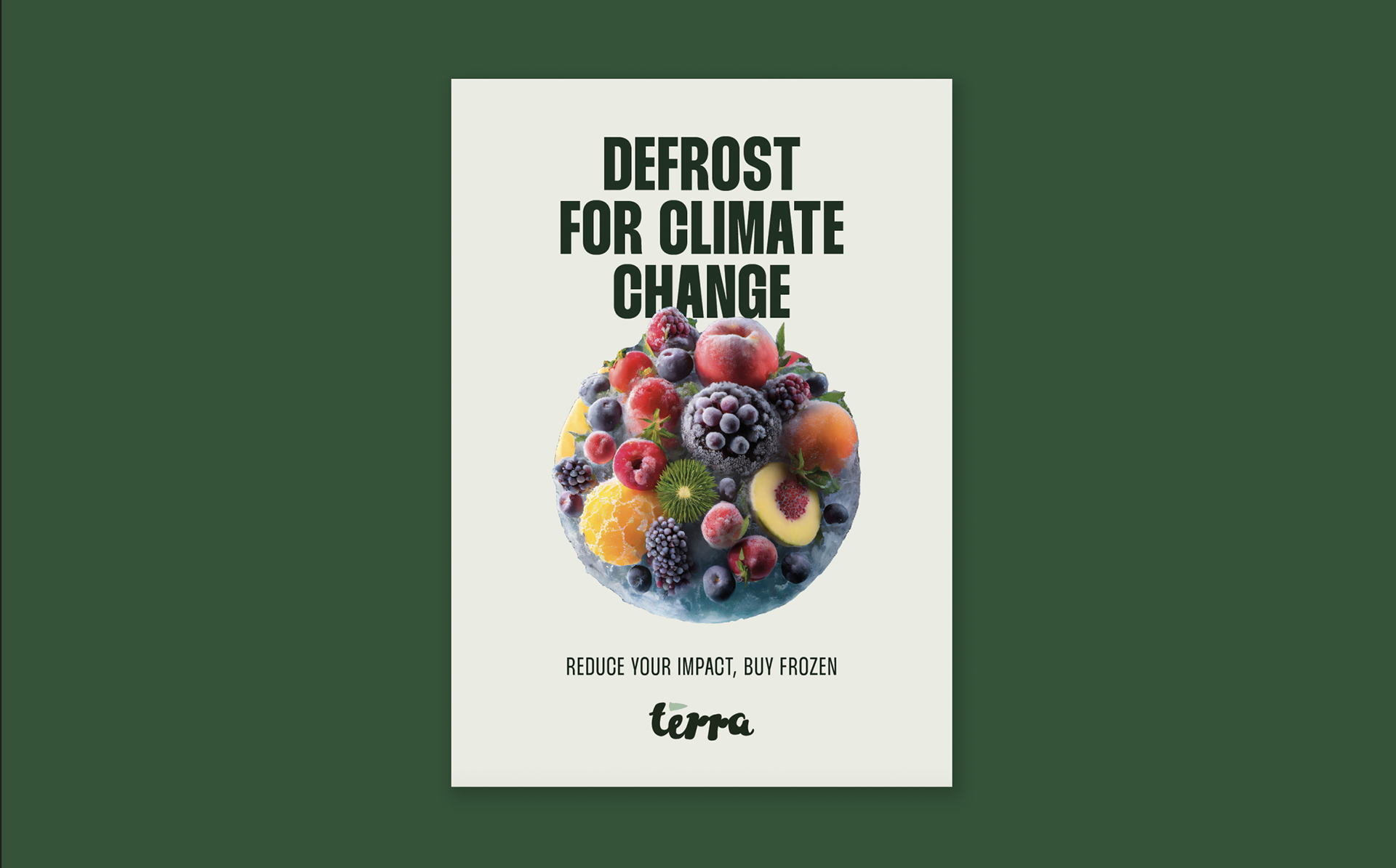 A conceptual rebrand for high street supermarket, Iceland, with a campaign focused on climate change. Food waste is the singular most effective thing a person can take action on to reduce their impact on the planet, and frozen food is the solution. The campaign aims to reframe the way people view frozen food, and in doing this, the rebrand hopes to reach an extended target audience to include students and more affluent shoppers, as it previously had struggled to do.